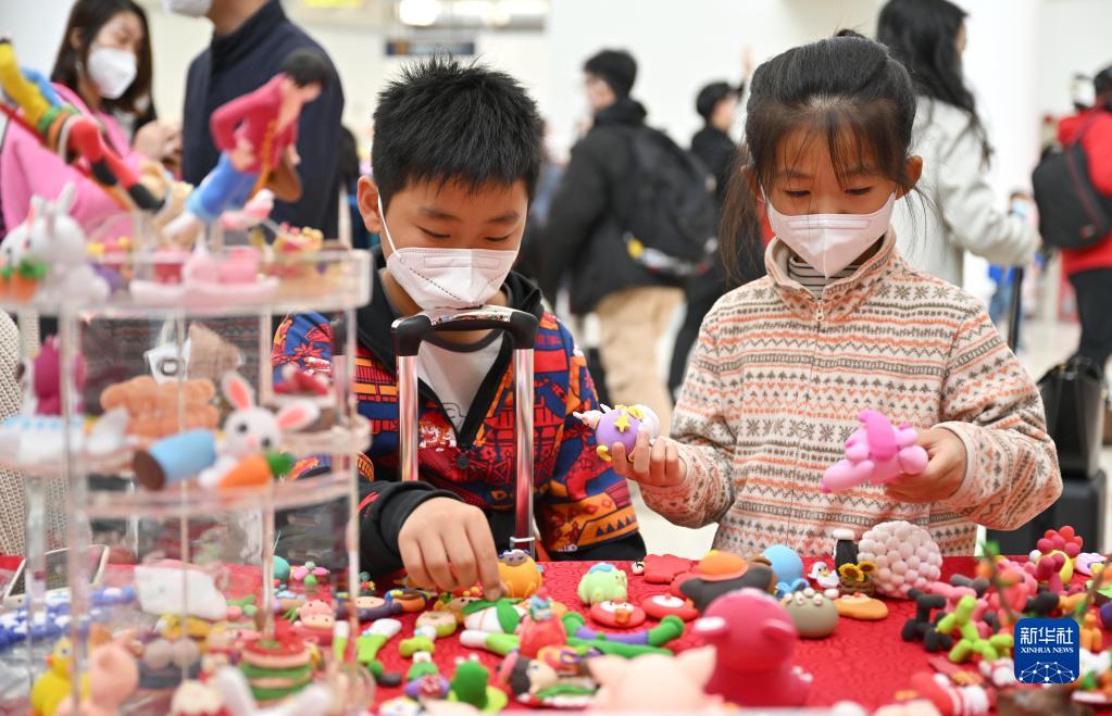 當日,在??诿捞m國際機場(chǎng)航站樓出發(fā)大廳里,剪紙、捏面人等民俗活動(dòng)吸引了不少旅客,讓他們感受到濃濃的年味。