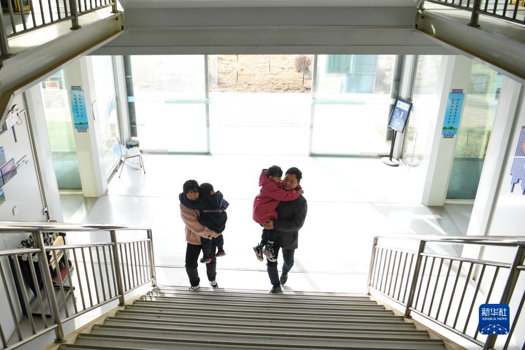 1月19日,李輝和妻子抱著(zhù)孩子們在項目部?jì)刃凶摺?/p>