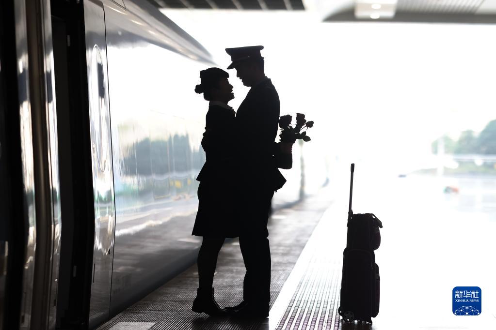 1月20日,王恒值乘結束,丈夫路延則開(kāi)始了自己的值乘任務(wù)。當日還是王恒的生日,路延為結束值乘的妻子準備了玫瑰花,夫妻二人在站臺短暫相聚后依依惜別。