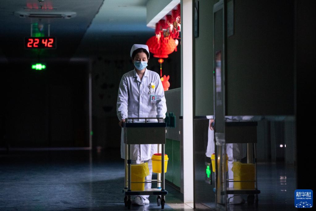 1月20日,醫護人員推著(zhù)治療車(chē)準備進(jìn)行夜間治療。