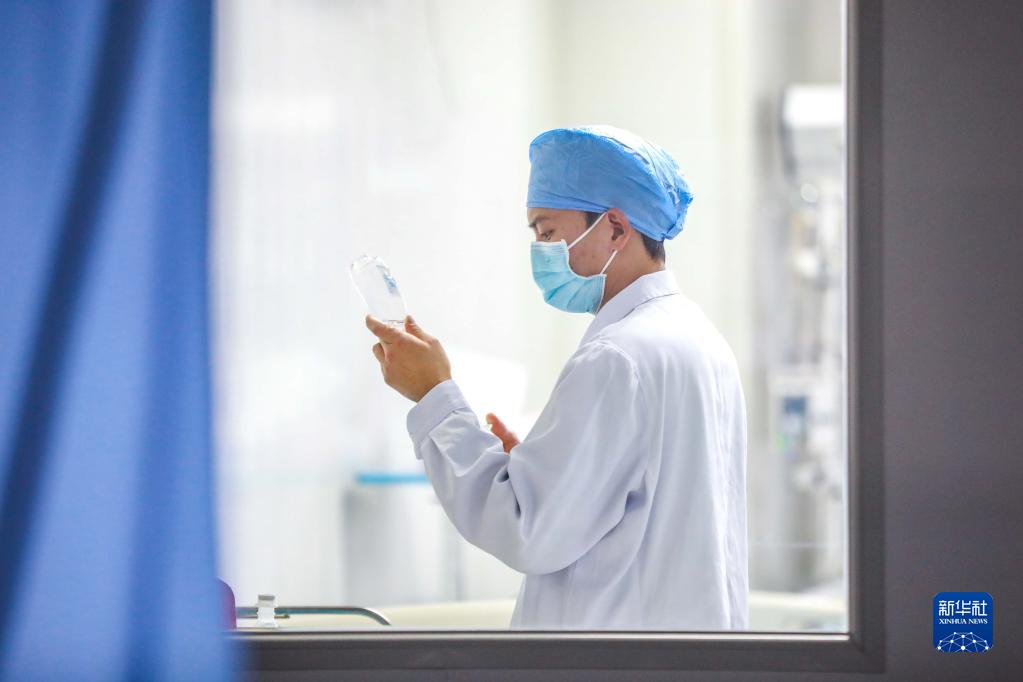 1月21日,醫護人員在貴州省畢節市第一人民醫院重癥醫學(xué)科配置藥物。