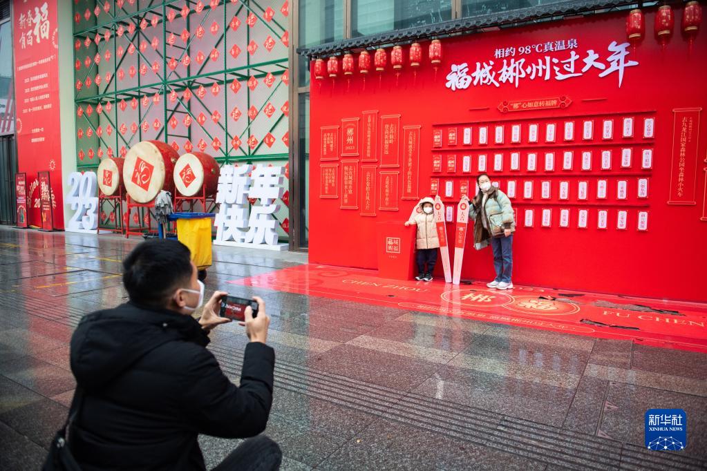 1月22日,市民在湖南長(cháng)沙市天心區黃興路步行街拍照。