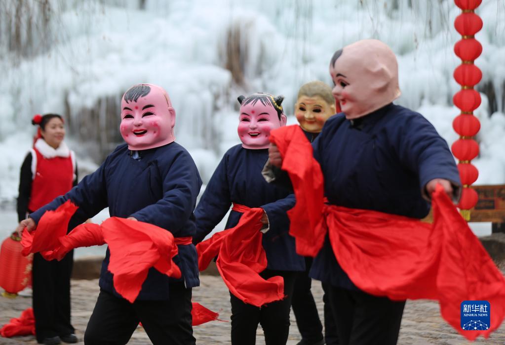 1月22日,在山東省臨沂市沂南縣竹泉村新春廟會(huì )活動(dòng)上,民間藝人表演民俗節目。