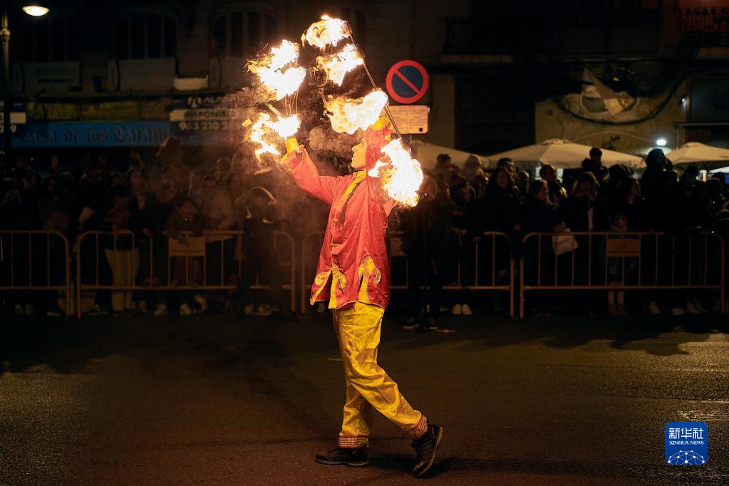 1月21日,當地民眾在西班牙巴倫西亞觀(guān)看春節游行。