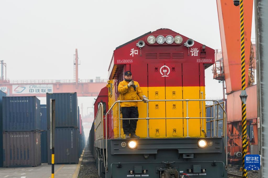 1月22日,兔年首趟西部陸海新通道鐵海聯(lián)運班列在重慶團結村中心站等待發(fā)車(chē)。
