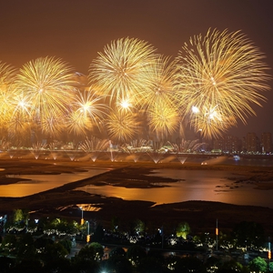1月22日大年初一晚,2023年南昌市迎春煙花晚會(huì )在江西省南昌市贛江老官洲上演。絢爛繽紛的煙花在夜空中爭奇斗艷,為市民及游客送上新春祝福。