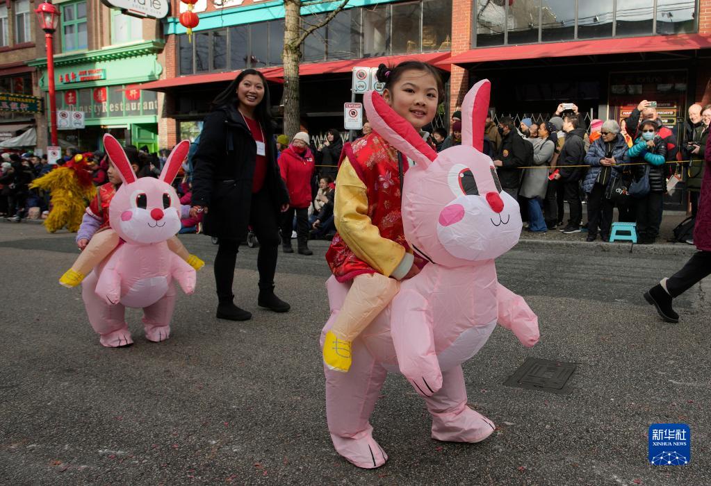 當日,加拿大溫哥華唐人街舉行第48屆春節大巡游,吸引數萬(wàn)民眾到場(chǎng)觀(guān)看,共同慶祝兔年新春佳節。