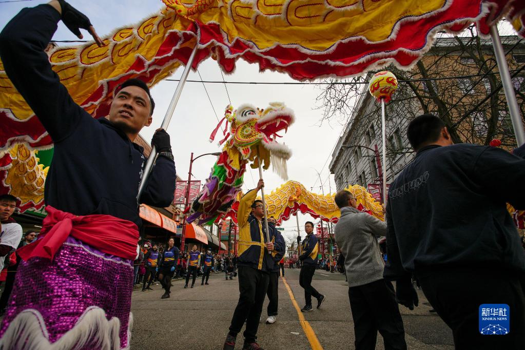 當日,加拿大溫哥華唐人街舉行第48屆春節大巡游,吸引數萬(wàn)民眾到場(chǎng)觀(guān)看,共同慶祝兔年新春佳節。