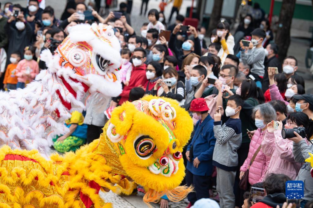 當日是大年初二,澳門(mén)旅游局在媽閣廟前安排了舞龍舞獅、變臉等賀歲活動(dòng),吸引大批市民及游客駐足觀(guān)賞。
