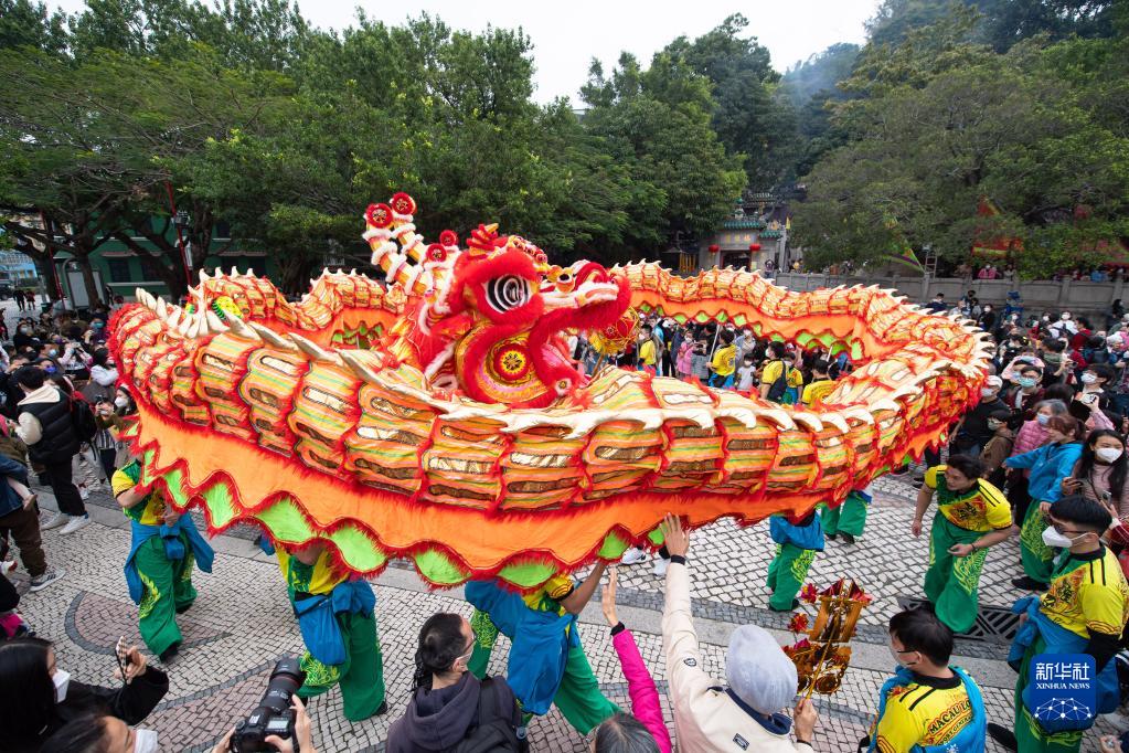 當日是大年初二,澳門(mén)旅游局在媽閣廟前安排了舞龍舞獅、變臉等賀歲活動(dòng),吸引大批市民及游客駐足觀(guān)賞。