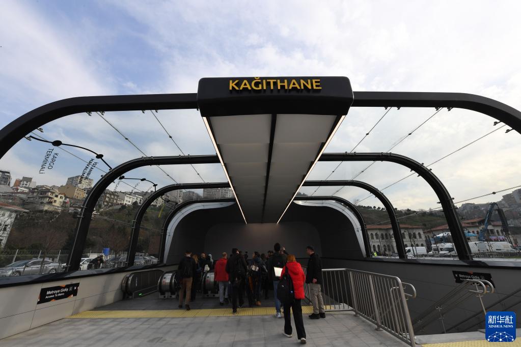 1月22日,在土耳其伊斯坦布爾,人們步入伊斯坦布爾新機場(chǎng)線(xiàn)卡厄特哈內車(chē)站。