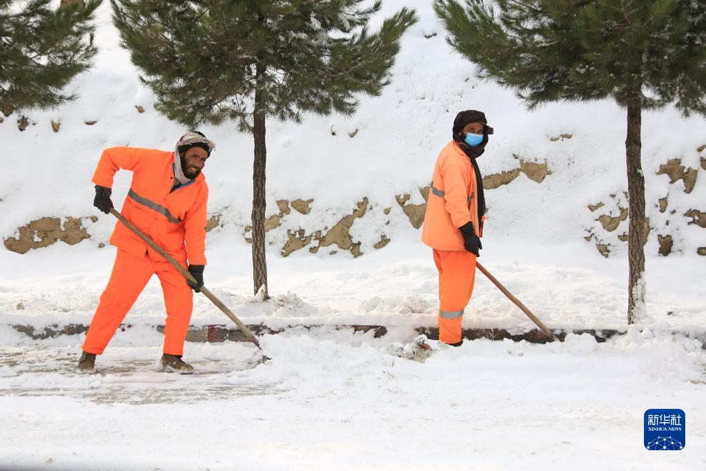 1月23日,市政工人在阿富汗首都喀布爾街頭清理積雪。
