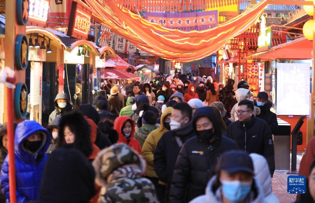 1月23日,市民在沈陽(yáng)新春皇寺廟會(huì )上游玩。