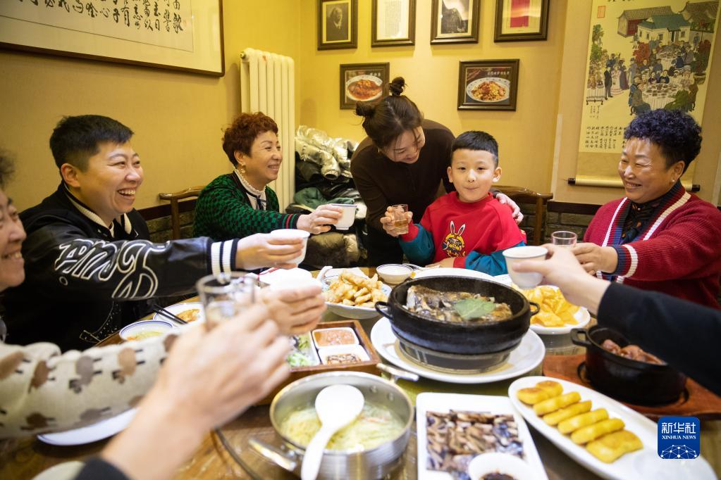 1月24日,在黑龍江哈爾濱市道里區老廚家中央大街店,人們聚餐慶祝佳節。