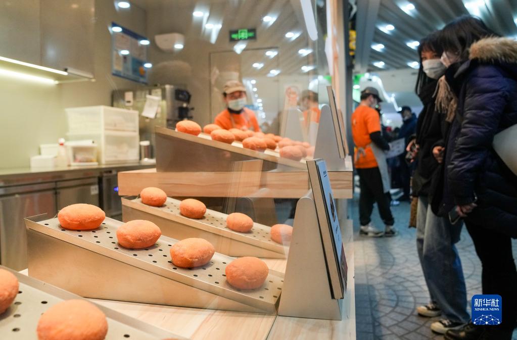 1月24日,消費者在上海徐家匯商圈的一家商店選購美食。