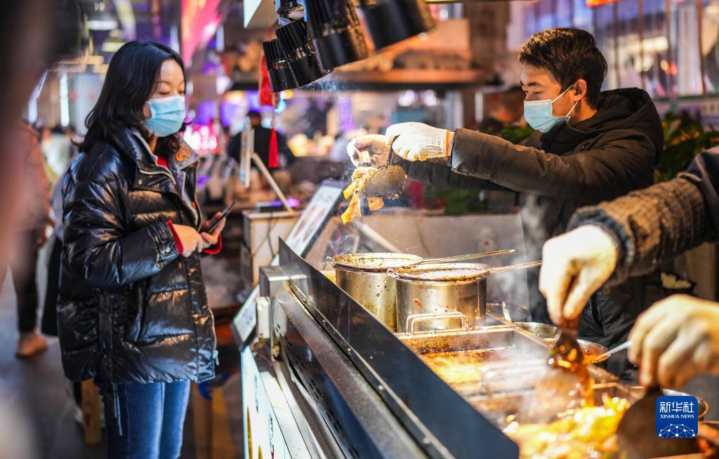 1月23日,顧客在貴州省貴陽(yáng)市南明區“青云市集”購買(mǎi)特色小吃“烤米皮”。