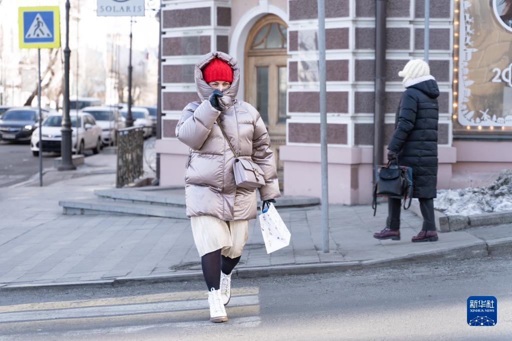 1月24日,行人走在俄羅斯符拉迪沃斯托克的街上。