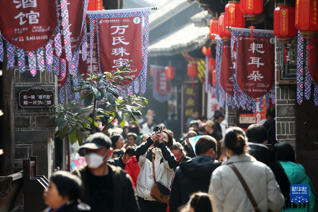 1月24日,游客在重慶市黔江區濯水古鎮老街游玩。