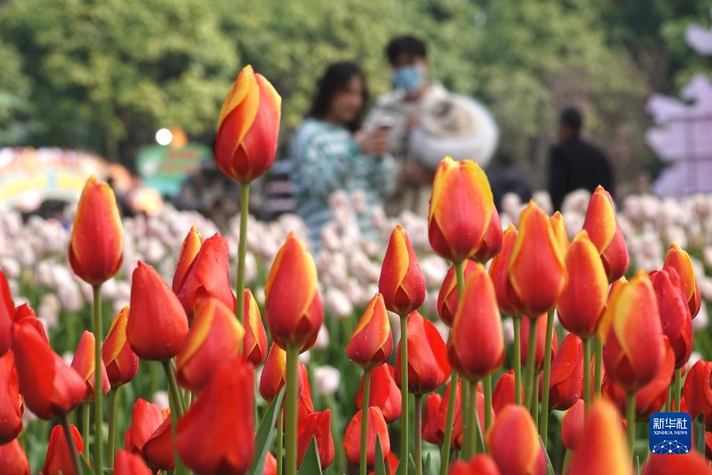 1月24日,游人在廣西南寧青秀山風(fēng)景區觀(guān)賞郁金香。