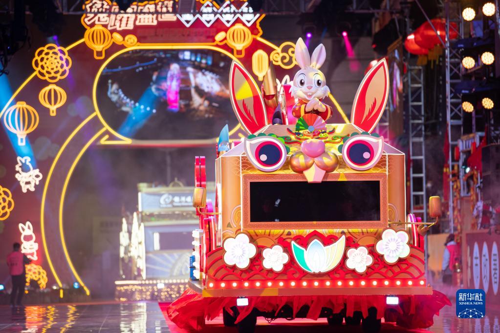 當日,澳門(mén)特區舉辦“兔躍盛世·歡樂(lè )春節”2023年農歷新年花車(chē)匯演。