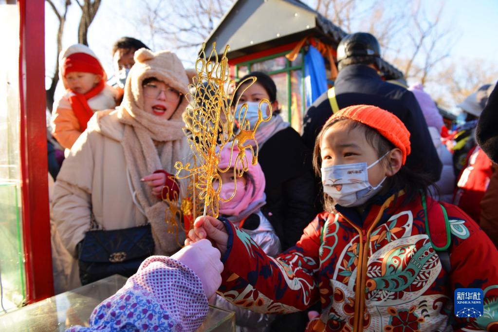 1月24日,小朋友在2023年圓明園新春游園會(huì )上購買(mǎi)糖畫(huà)。