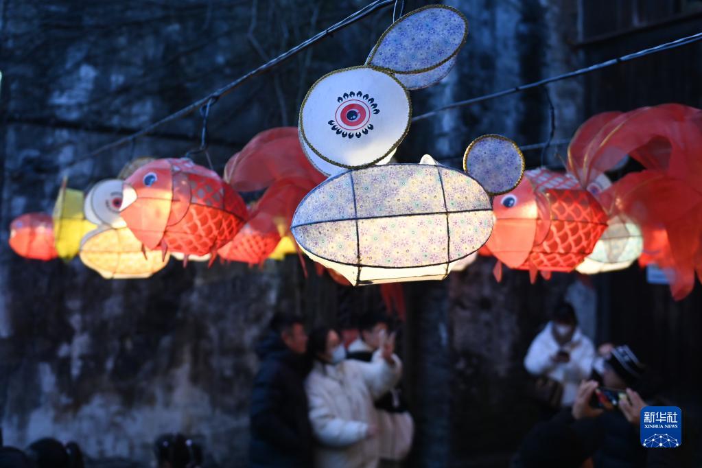 1月25日,游客在浙江省桐鄉市烏鎮景區參觀(guān)生肖主題花燈。