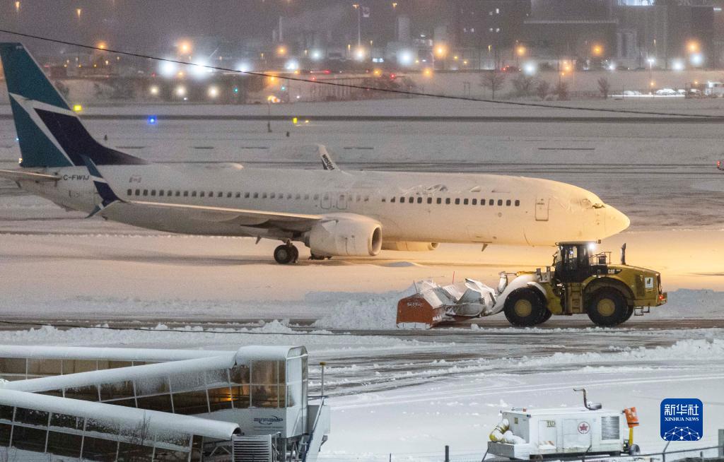 1月25日,鏟雪車(chē)清理加拿大多倫多皮爾遜國際機場(chǎng)停機坪上的積雪。