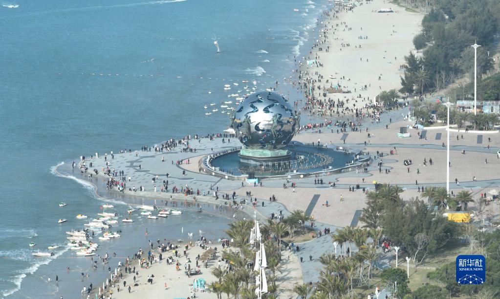 1月26日,游客在廣西北海十里銀灘景區游玩(無(wú)人機照片)。