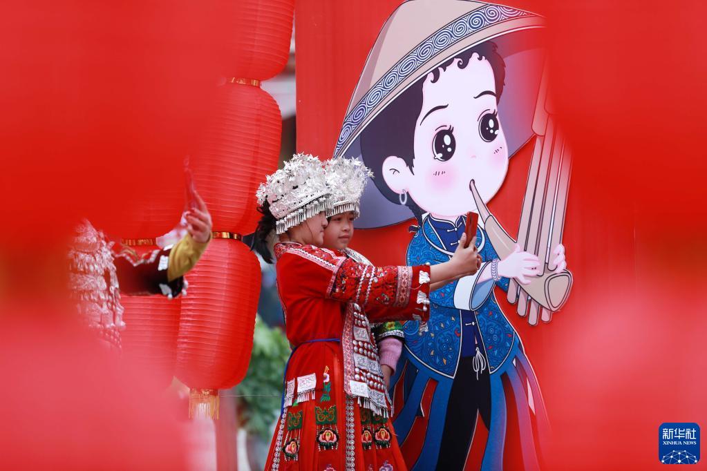 1月26日,游客在貴州省丹寨縣萬(wàn)達小鎮景區拍照游玩。