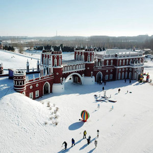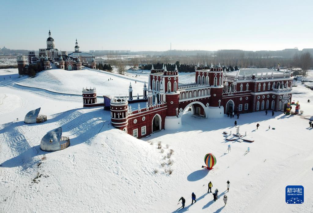 1月26日,游客在哈爾濱伏爾加莊園游玩(無(wú)人機照片)。