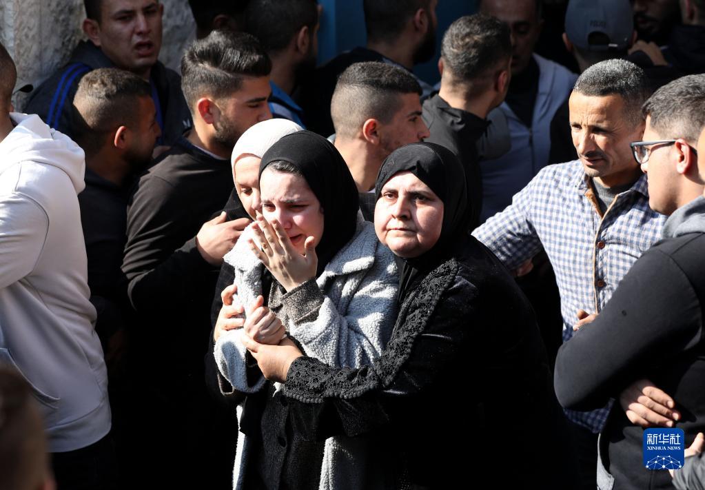 1月26日,人們在約旦河西岸城市杰寧參加被以色列軍隊打死的巴勒斯坦人的葬禮。