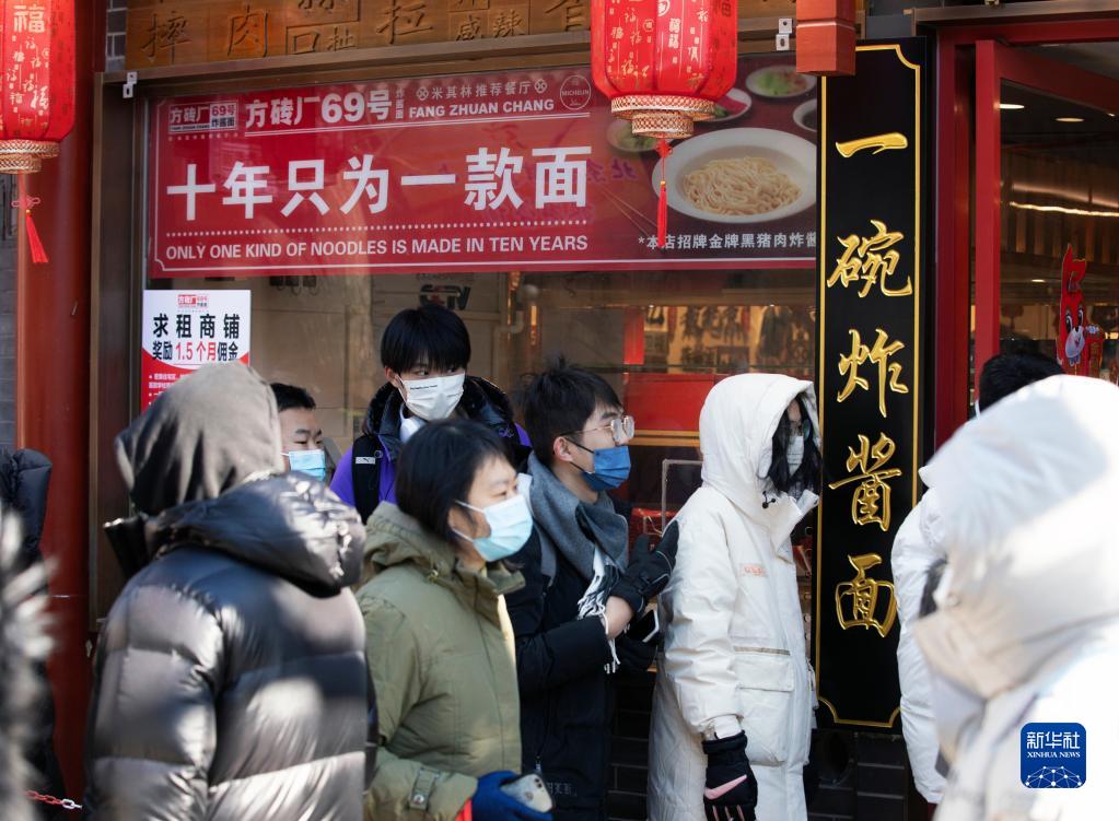 1月27日,北京南鑼鼓巷的一家老北京炸醬面館吸引眾多游客前去品嘗。