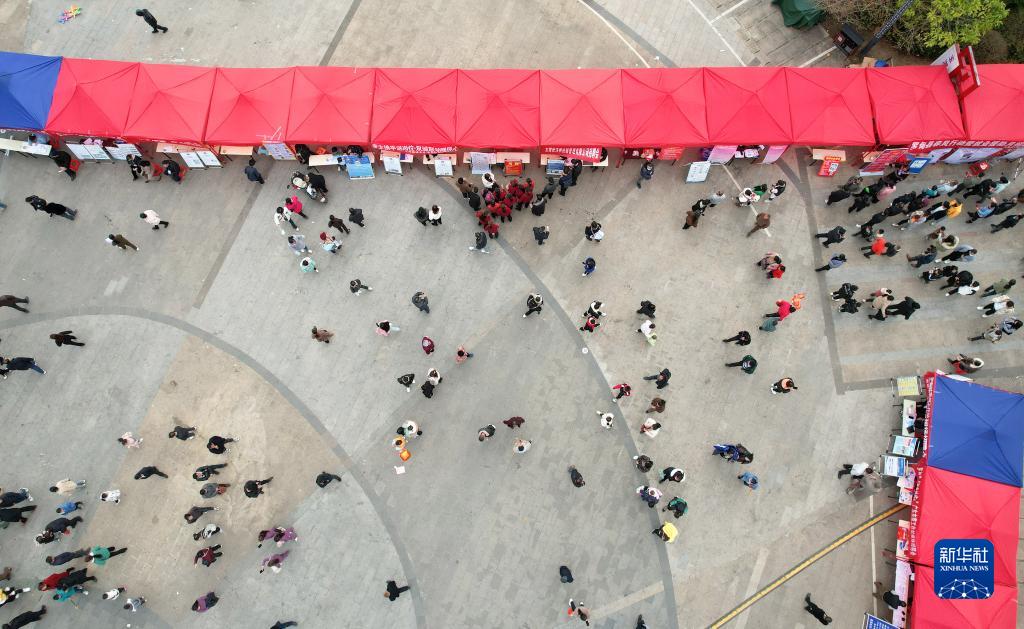 1月27日拍攝的黔南布依族苗族自治州羅甸縣“春風(fēng)送崗”專(zhuān)項行動(dòng)招聘會(huì )現場(chǎng)(無(wú)人機照片)。