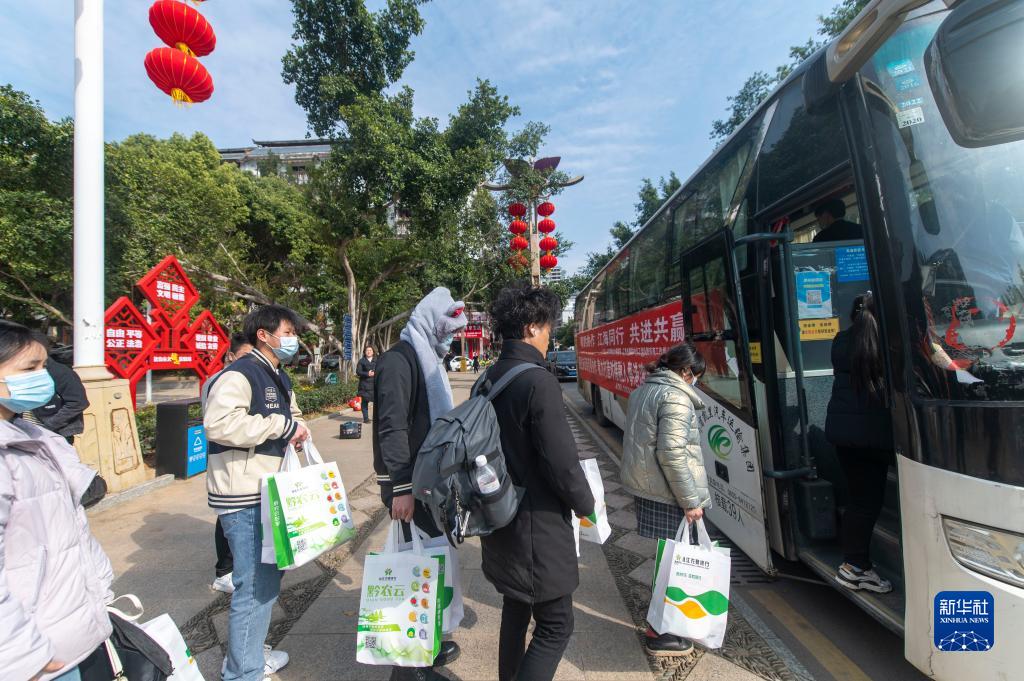 1月27日,黔東南苗族侗族自治州從江縣返崗群眾乘坐政府包車(chē)前往廣東省佛山市務(wù)工。