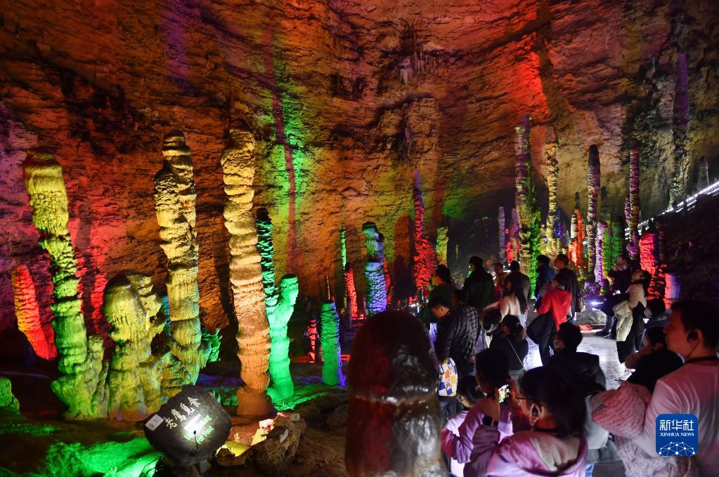1月27日,游客在張家界國家森林公園黃龍洞景區游覽。