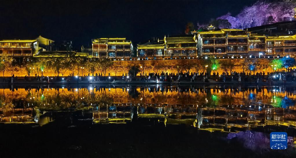 1月25日凌晨,游客在湘西鳳凰古城游覽。