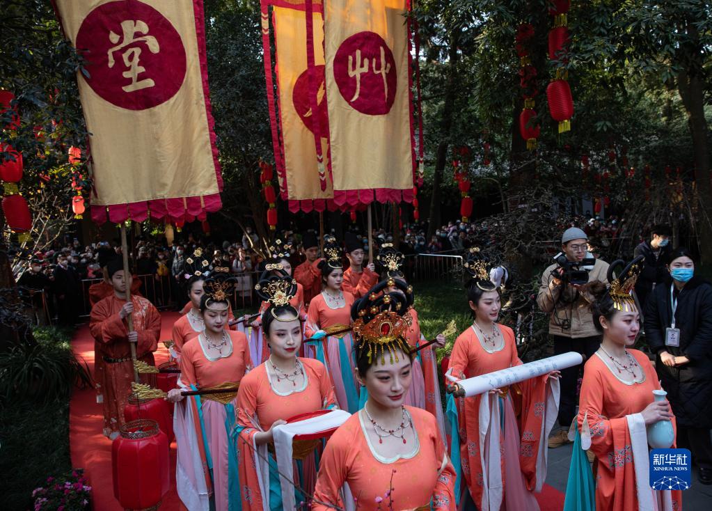 1月28日,在四川成都舉行的“人日”游草堂、祭拜詩(shī)圣杜甫活動(dòng)現場(chǎng),主祭隊伍入場(chǎng)。