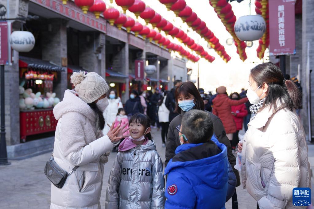 1月28日,在北京市東城區鮮魚(yú)口街,導游何靜(左一)在為游客講解。