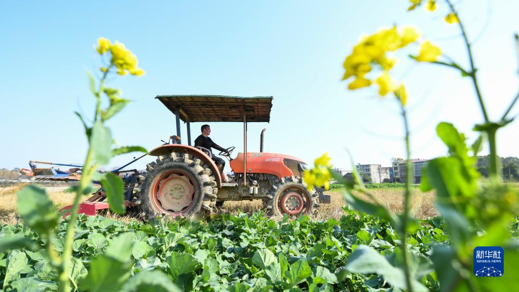 1月28日,湖南省常寧市三角塘鎮江南村村民駕駛農機在翻耕農田。