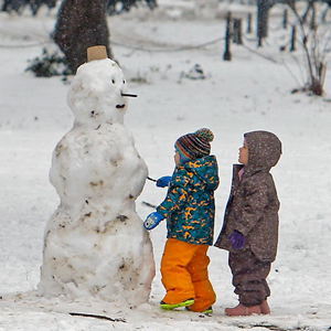 1月28日,人們在羅馬尼亞布加勒斯特一處公園的雪地上玩耍。