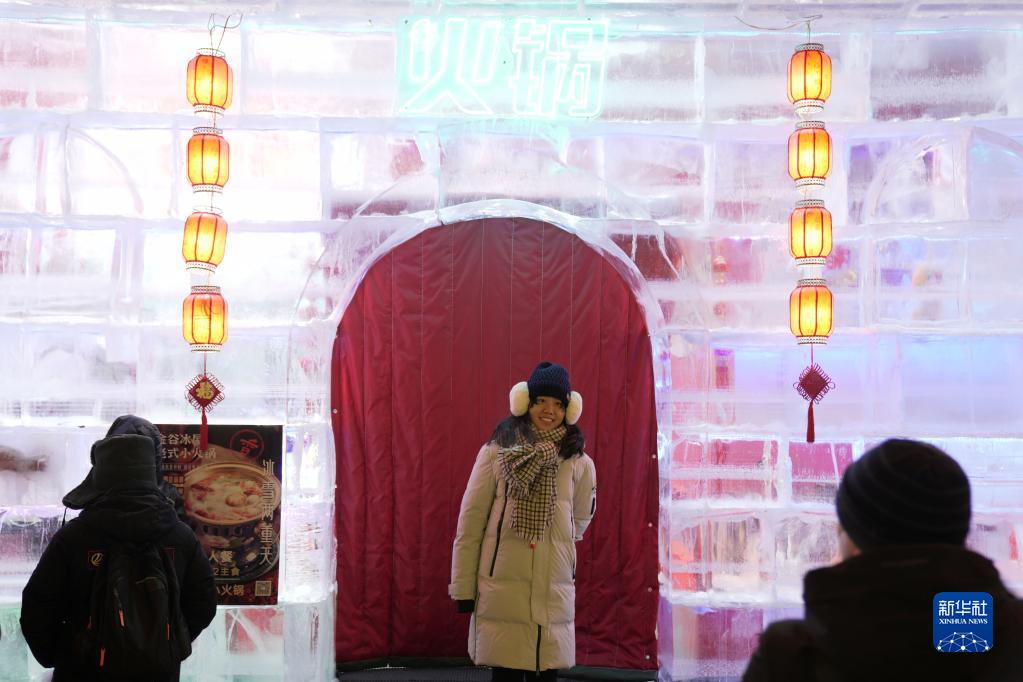 時(shí)下正值“冰城”哈爾濱市的冰雪旅游旺季,在百年老街中央大街上,一處用冰塊搭建而成的“冰屋”成為眾多游客參觀(guān)體驗和拍照留影的“打卡地”。