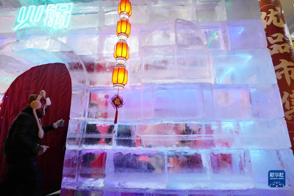 時(shí)下正值“冰城”哈爾濱市的冰雪旅游旺季,在百年老街中央大街上,一處用冰塊搭建而成的“冰屋”成為眾多游客參觀(guān)體驗和拍照留影的“打卡地”。
