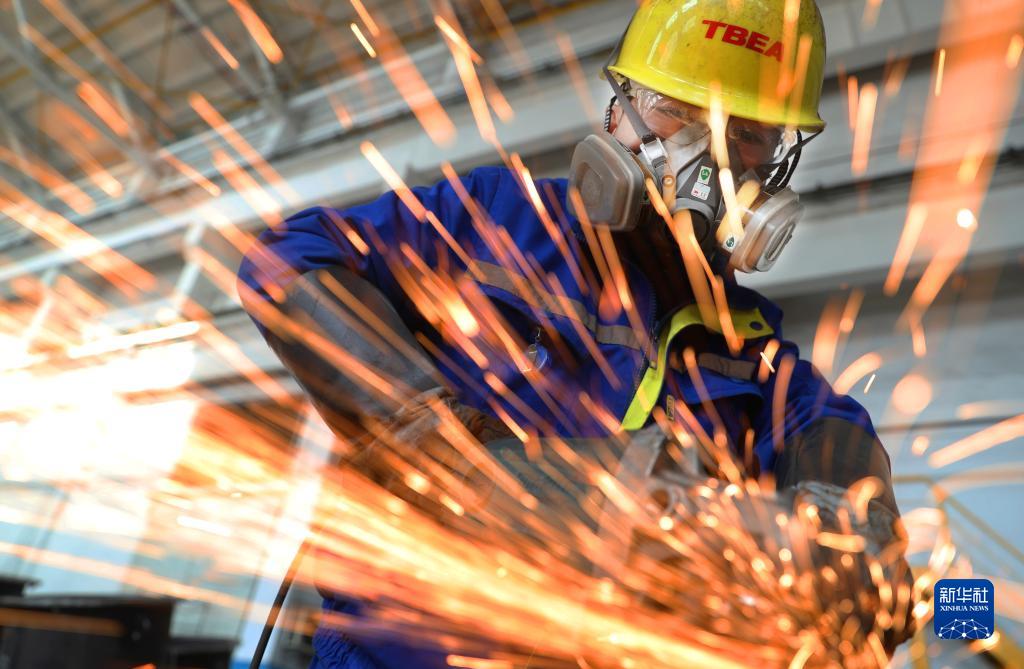 1月28日,在湖南省衡陽(yáng)市,特變電工衡陽(yáng)變壓器有限公司工人進(jìn)行打磨作業(yè)。