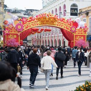 游客在澳門(mén)大三巴牌坊前參觀(guān)游覽(1月26日攝)。