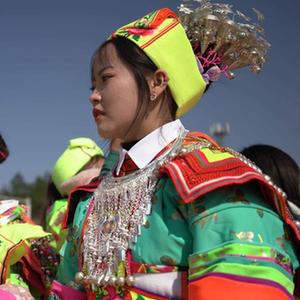 當日是大年初八,在貴州省黔南布依族苗族自治州龍里縣龍山鎮中排村,各村寨的苗族群眾歡聚一堂,舉行一年一度的“跳月”活動(dòng),歡慶新春?!疤隆笔钱數孛缱迦罕娖砀oL(fēng)調雨順、歡慶新春的傳統民俗活動(dòng),也是苗族青年男女尋找意中人的大型社交活動(dòng)。