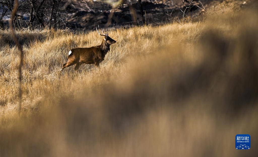 1月29日,一只馬鹿在灤河源國家森林公園內覓食。新華社記者 劉懿德 攝