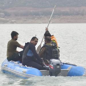 1月29日,人們聚集在巴基斯坦開(kāi)伯爾-普什圖省科哈特地區的船只傾覆事故現場(chǎng)。