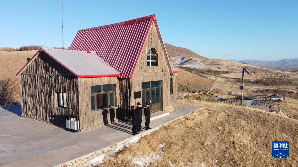 1月29日,多倫縣森林公安局灤河源國家森林公園森林公安派出所的民警在森林公園內巡查(無(wú)人機照片)。