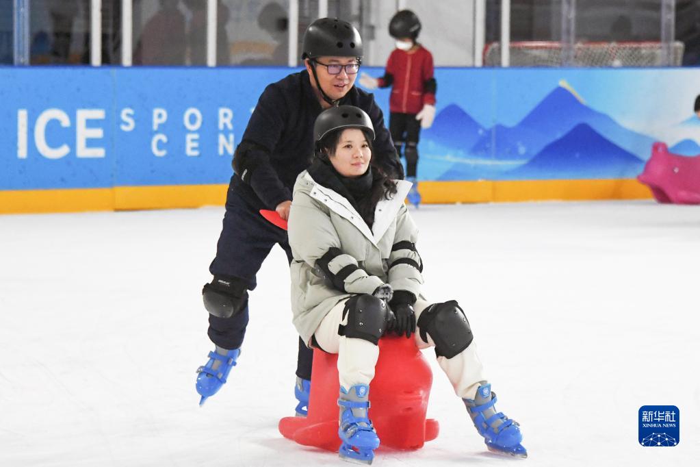 人們在“冰立方”冰上運動(dòng)中心滑冰(1月23日攝)。