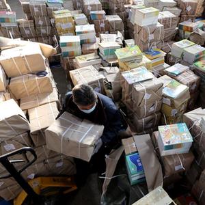 1月30日,在湖南省永州市道縣新華書(shū)店倉庫,工作人員在搬運教材。